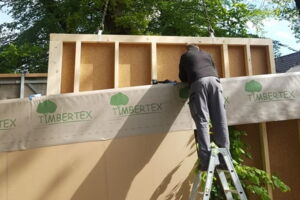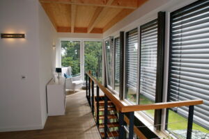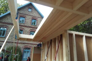 - Wand- und Deckenkonstruktion in wohngesunder Holzrahmenbauweise