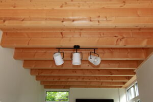 - Deckenkonstruktion als Massivholzdecke (sichtbar)